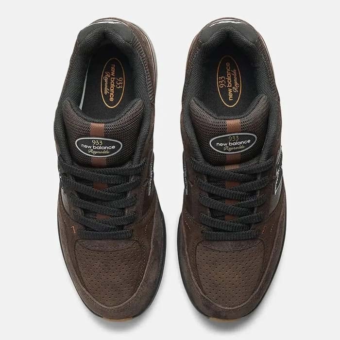 ニューバランスのスケートライン「Numeric(ヌメリック)」から、Andrew Reynolds シグネチャーモデル『933』にカラー「BAR(Brown/Black)」が登場。ランニングシューズ由来のデザインをベースに、スケート仕様へ最適化された一足です。深みのあるブラウンにブラックのオーバーレイ、アクセントに暖色系のトーンを配した落ち着いたカラーリングで、ダークトーンのミッドソールが全体を引き締めます。アッパーはスエード/レザー/メッシュを組み合わせ、摩耗の多いつま先・かかとを補強。ABZORBミッドソールが着地衝撃を吸収し、ラバー製カップソールが高いグリップと安定感を提供します。Andrew Reynolds のスケート経験を反映したプロ仕様で、日常から本格ライディングまで幅広く対応します。